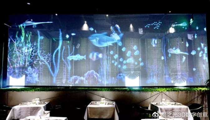 3D全息投影餐廳具有其獨(dú)特的魅力,它可以讓你時(shí)而置身海洋世界,時(shí)而有群花綻放,時(shí)而有亭臺(tái)樓閣,讓你在真實(shí)與虛構(gòu)、時(shí)間與空間中品味美食、美酒、音樂人生!