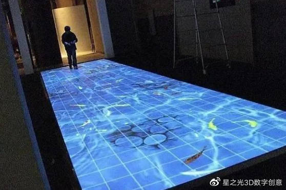 地面互動(dòng)一般是以地面為載體,地面上設(shè)置互動(dòng)感應(yīng)屏、感應(yīng)磚,把設(shè)置好的投射光線投射到地面,產(chǎn)生互動(dòng)效果,主要是利用人的雙腿,在地面上形成互動(dòng),產(chǎn)生獨(dú)特的互動(dòng)效果。