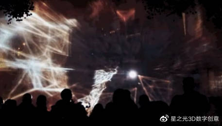 Joanie的“Constellations”與其他大部分藝術(shù)裝置的投射媒介不同,它是通過使用高壓氣體,以及自定義的噴口技術(shù),創(chuàng)造出一種漂浮的感覺。