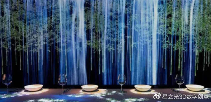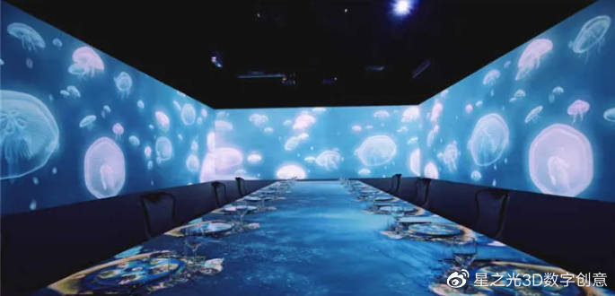 5D全息餐廳與傳統(tǒng)的餐廳空間不同,5D全息投影餐廳采用了交互投影技術(shù),將原本靜止的餐飲空間變成了一個(gè)動(dòng)態(tài)的視覺,讓消費(fèi)者在不同的場景中,感受到了一種沉浸式的交互式體驗(yàn)。