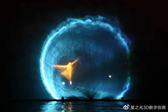 水幕投影是一種水景表演,是一種利用高亮度投影機將影像投射到水面的媒介。讓水在水中呈現(xiàn)出3D的效果,并能利用現(xiàn)場的特效和舞臺演出,將現(xiàn)代的光影技術(shù)和傳統(tǒng)的文化融合在一起,形成一個壯觀的場景。