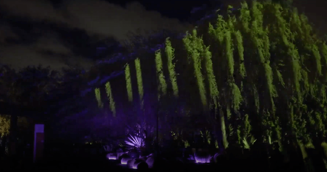 巧妙運(yùn)用投影和照明,利用植物園不同的地勢(shì)特點(diǎn),將夜間植物園打造得與白天截然不同。