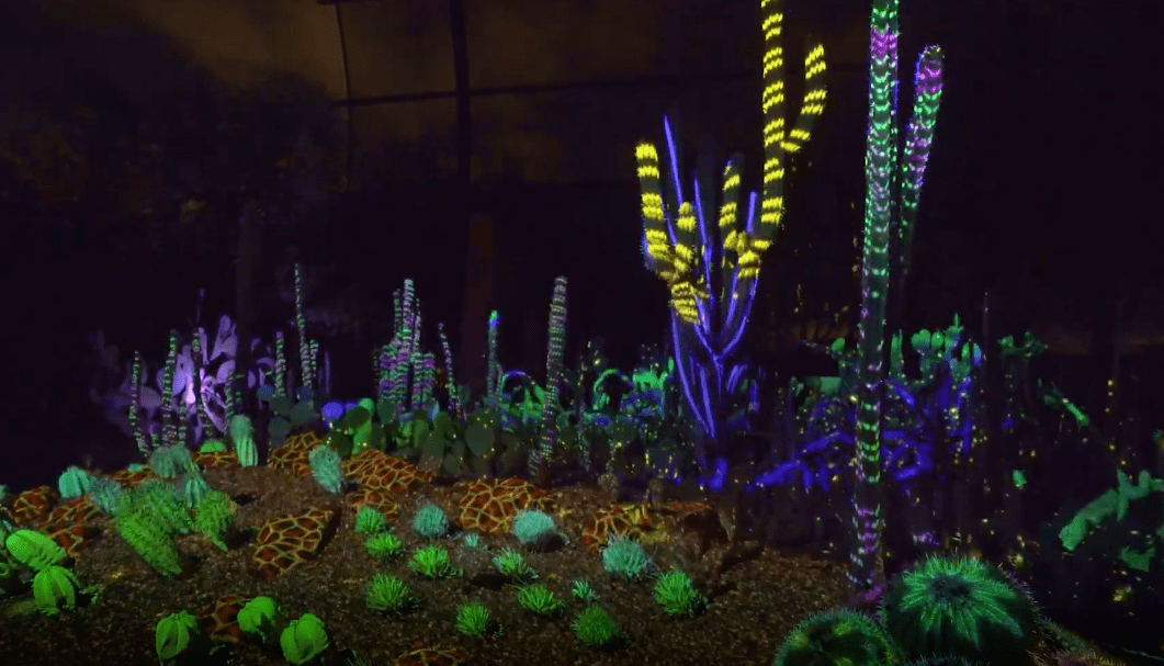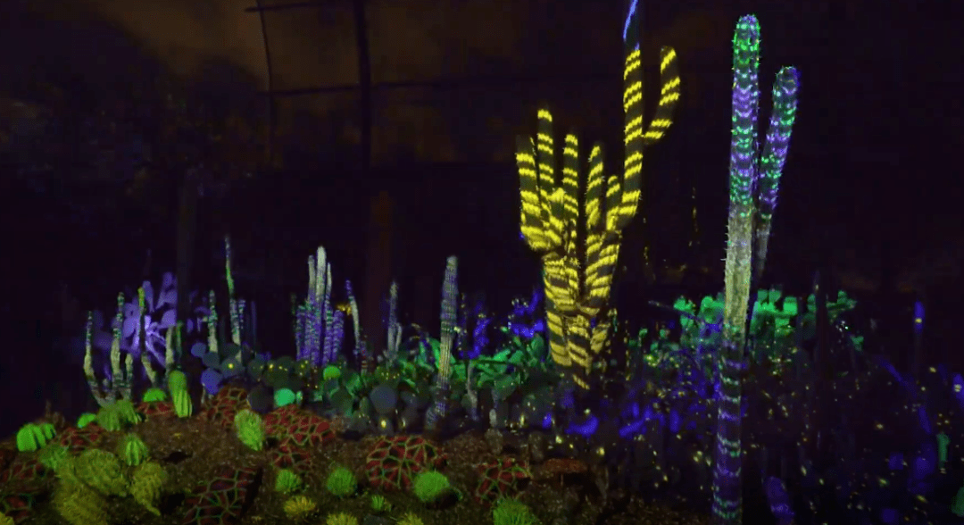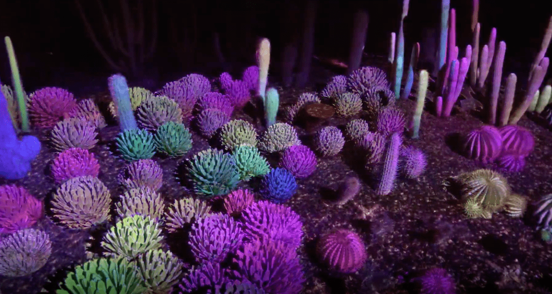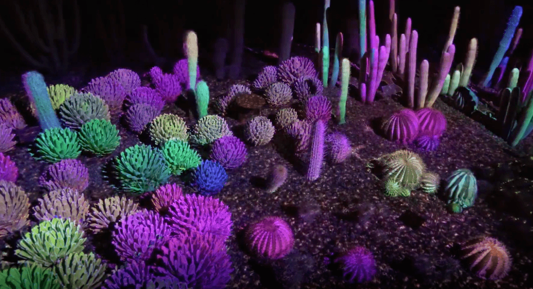 沙漠植物園成立于1937年。視覺(jué)藝術(shù)創(chuàng)意團(tuán)隊(duì) Klip Collective將光影與沙漠植物結(jié)合在一起,打造了名為 Electric Desert的獨(dú)特藝術(shù)體驗(yàn)。