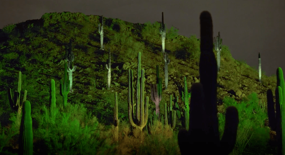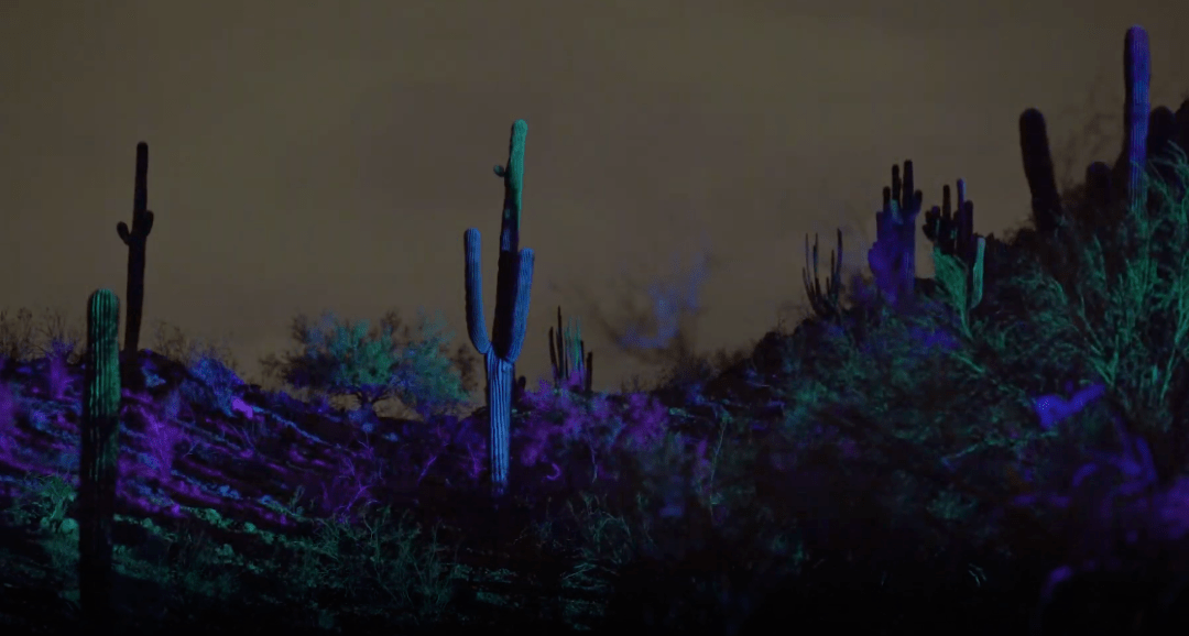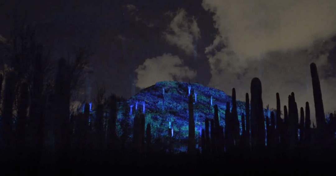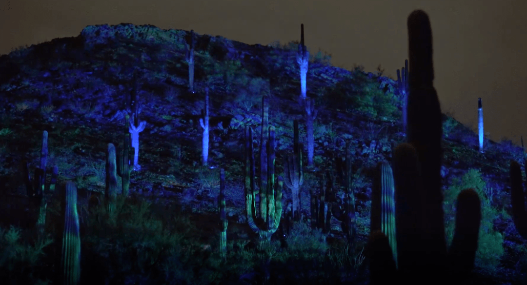 Desert Chorale利用一片生長(zhǎng)著巨柱仙人掌的小山坡創(chuàng)作展覽的內(nèi)容,每隔20分鐘就會(huì)上演一次光影表演。