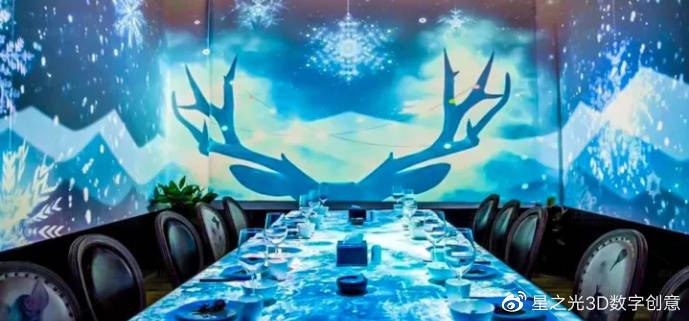 全息光影餐廳運(yùn)用交互式投影技術(shù),將墻面、地面、桌面等進(jìn)行融合,形成光影交互的空間,營(yíng)造出一種可視化的消費(fèi)場(chǎng)景,為品牌創(chuàng)造價(jià)值與影響力提供了有力的支撐。