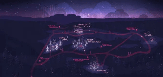 項?以“?晶森林”、“森林的頻率”、“壁爐”、“?語樹”和“?的記憶”這五個裝置的設計給游客創(chuàng)造不同層次的參與度,增加游客的參與互動