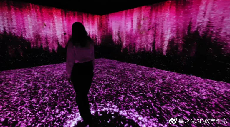 沉浸式的交互式投影,再配合互動(dòng)感應(yīng)系統(tǒng)的智能操控,可以與觀眾進(jìn)行互動(dòng),比如走馬觀花,手舞足蹈,讓人沉浸在一種夢(mèng)幻般的感覺中。