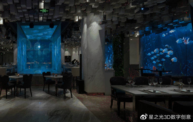 沉浸式光影餐廳,加上美味佳肴,配合炫酷的光影餐廳,將高科技與美味完美融合,更能吸引用戶的目光與青睞。
