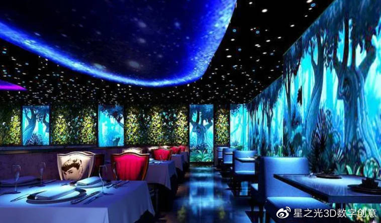 “全息餐廳”是最近幾年興起的一項(xiàng)新技術(shù),將全息膠片與投影機(jī)技術(shù)結(jié)合,然后將畫(huà)面中的內(nèi)容進(jìn)行還原,形成全息影像,被稱為“沉浸式”、“全息餐廳”、“三維全息沉浸式”、“3D全息餐廳”等等。